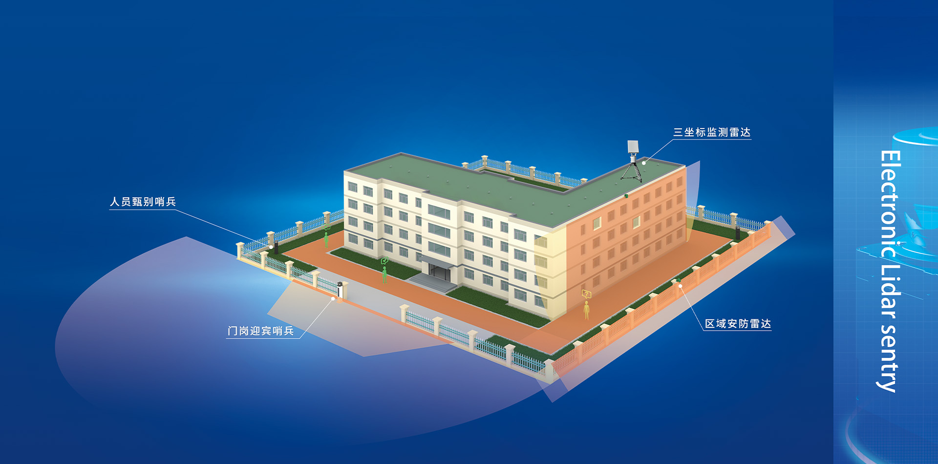 激光雷達哨兵是以天河電子激光雷達系列產品為核心器件,配套核心控制器、傳輸模塊、視頻模塊、身份認證模塊、報警模塊等形成的一套便攜獨立式安全防護裝備。激光雷達哨兵基于激光掃描技術,自動掃描精確獲取入侵目標實時坐標位置,自動記憶入侵目標的運動軌跡;它形成了一堵無形的扇面激光墻,任意設置周界及內部重點防護區域;結合應用需求使用定制的特征識別算法,準確判斷警情;支持多臺PTZ攝像機聯動,徹底解放人力,高效利用視頻資源;同時,融合身份認證模塊,區分合法人員與非法人員,增強警情取證的針對性以及警情處置的時效性。